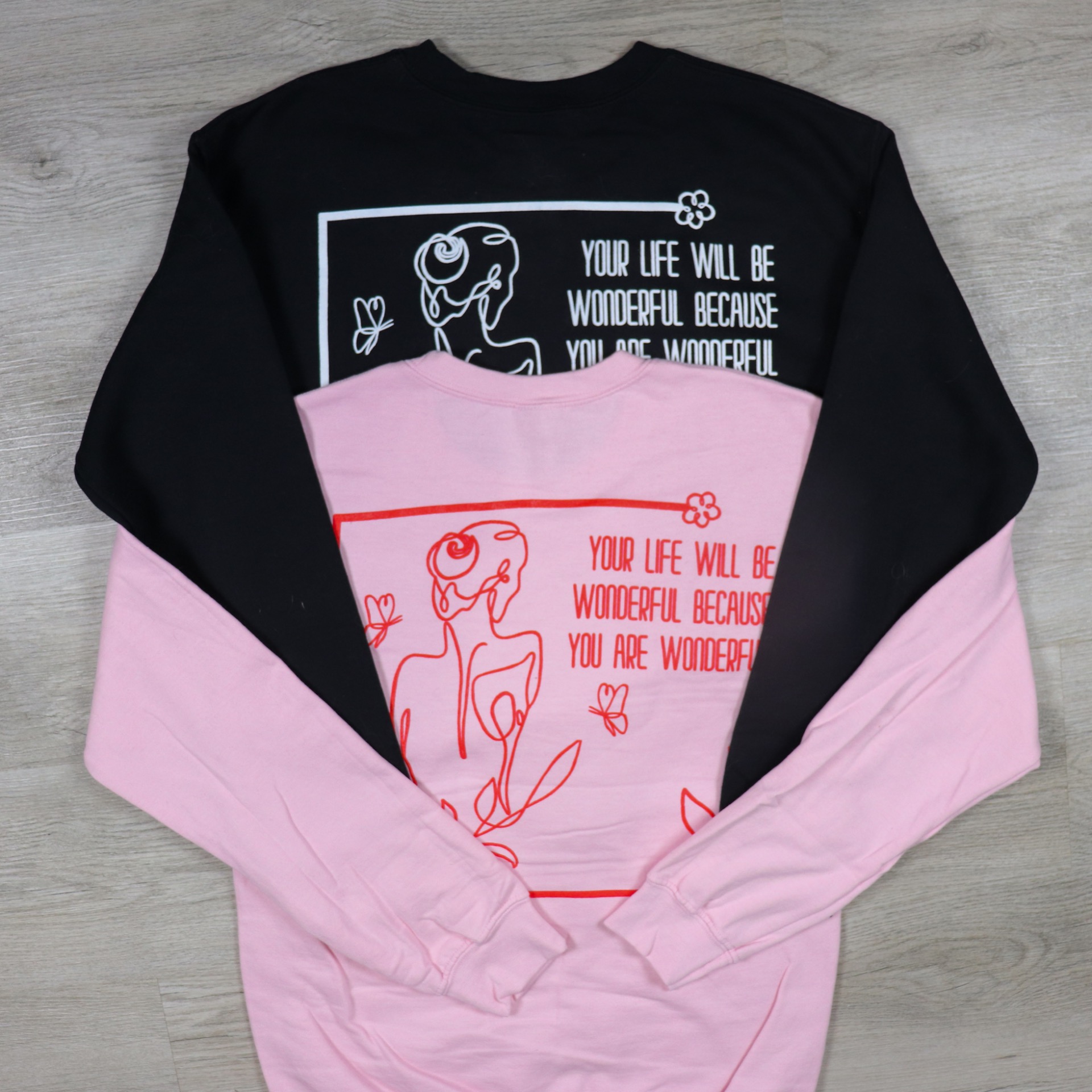 Wonderful Crewneck je mikina, která ti každý den připomene, že jsi výjimečný/á. Na zádech najdeš autorský line-art design s větou "Your life will be wonderful because you are wonderful" – jemný detail, který si zamiluješ na první oblečení.